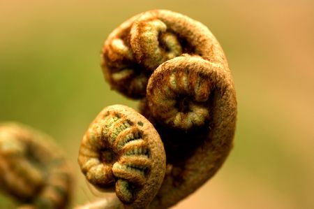 Spiral shape of a growing fern, close up