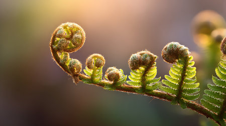 Delicate fern fronds unfurling in lush greenery offer natural beauty with vibrant tones
