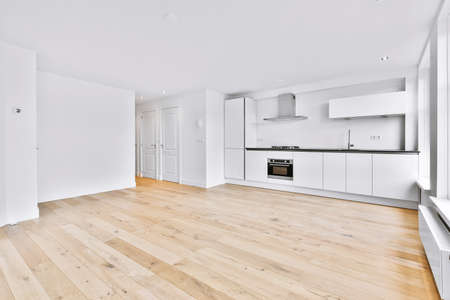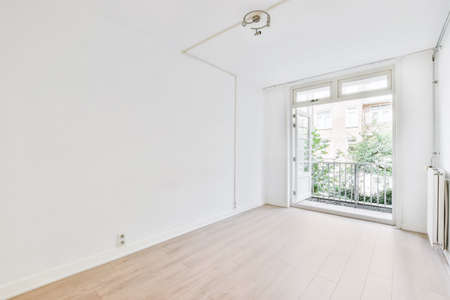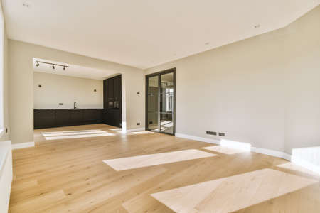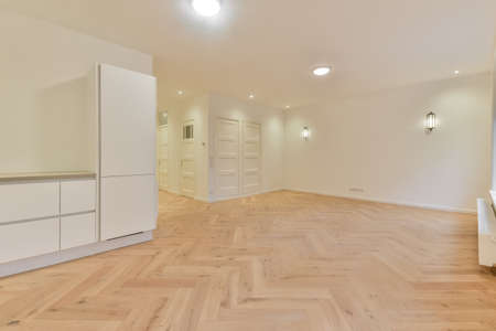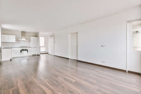 interior new house, empty room with white walls and wooden floor