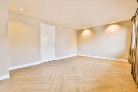 Luxurious empty room with door and parquet floor