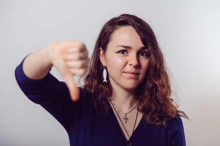 Woman showing a thumb down gesture