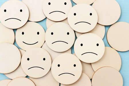 Concept image of satisfaction level. wooden cubes with emotions
