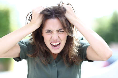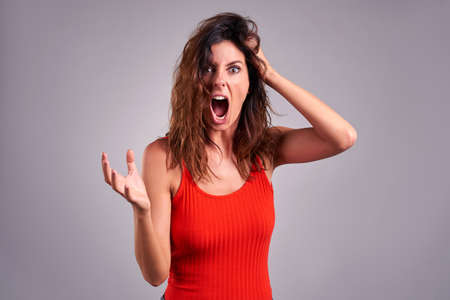 A beautiful young woman screaming furiously.