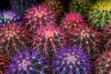 Close-up group of colorful Gymnocalycium mihanovichii. Cactus are popular with thorns and are highly resistant to drought. Cactus is a botanically multi-species tree.