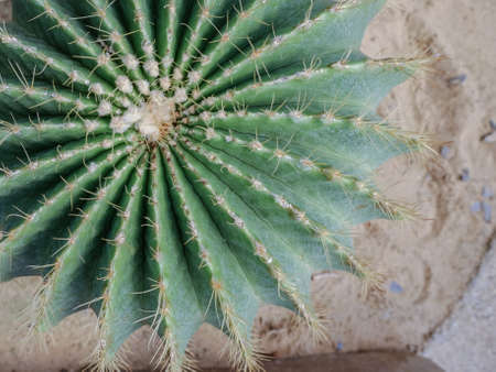 Top view of exotic cactus in desert
