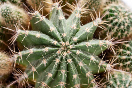 Green cactus with close-up needles. Big and small.