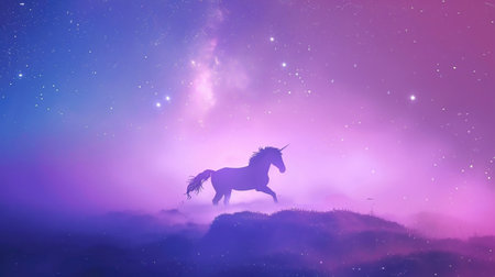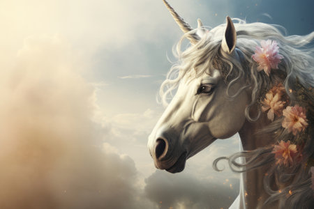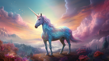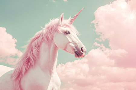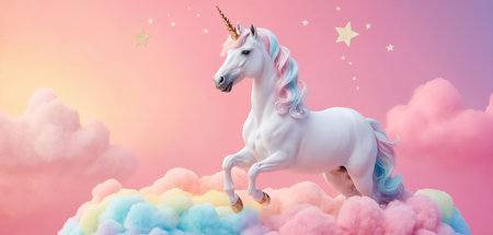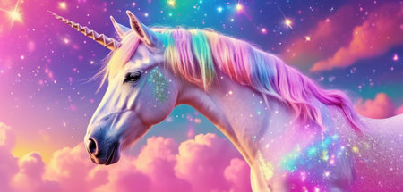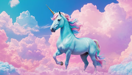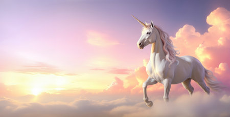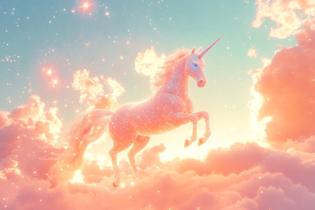 Magical scene with a unicorn in a dreamy sky, symbolizing fantasy and purity