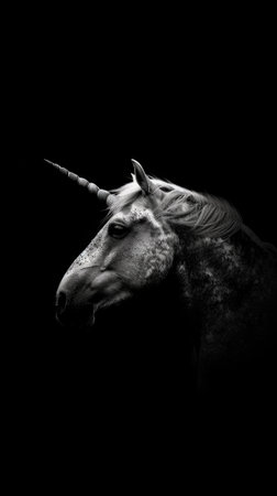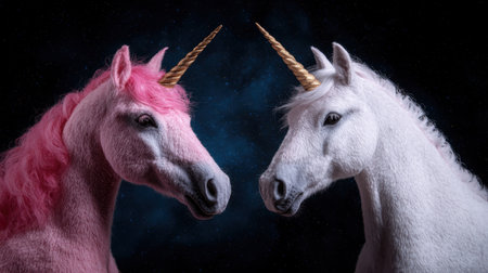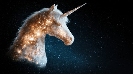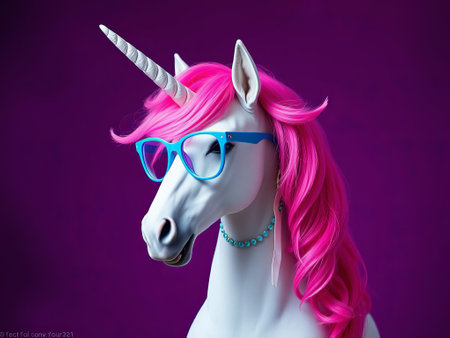 a majestic unicorn takes center stage with a captivating close-up view, set against an enchanting studio backdrop