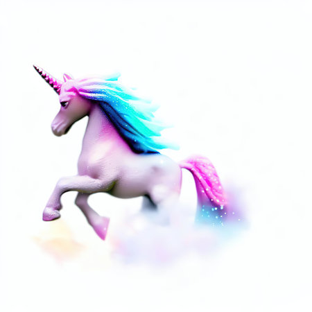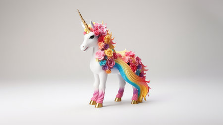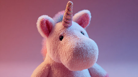 delightful unicorn toy, isolated on a crisp white background. Perfect for conveying the magic of childhood, fantasy play, and imaginative adventures.