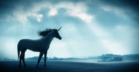 Believe the unbelievable. Shot of a beautiful unicorn against against a dramatic landscape.