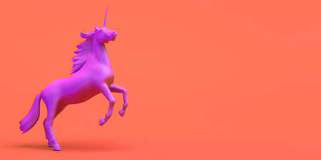 Banner with pink unicorn trotting. Abstract. 3d illustration.