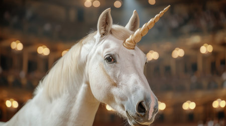 Magical white unicorn with golden horn