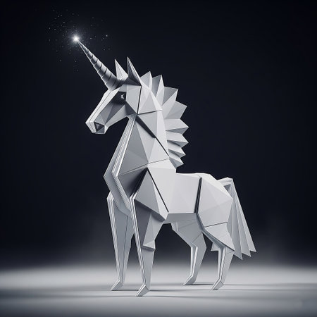 In this striking image, a resplendent unicorn gallops through the heart of a bustling business district, its mane flowing with the momentum of rapid growth. A metaphor for a startup's swift journey to becoming a 'unicorn' - a term for startups valued at over a billion dollars - this scene captures the spirit of entrepreneurial success against the odds. The mythical creature's bold progress among the cabs and skyscrapers embodies the audacity and vitality of emerging ventures in a competitive marketplace. An emblematic piece that illustrates the blend of vision and velocity on the road to commercial triumph.