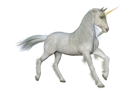 White unicorn. Fairytale creature 3d illustration isolated on white background.