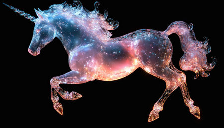Majestic unicorn galloping through a starry night sky with sparkling background elements