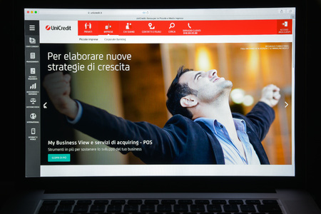 Milan, Italy - August 10, 2017: Unicredit bank website homepage. It s an Italian global banking and financial services company. Unicredit bank logo visible.