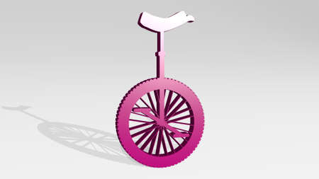 MONO CYCLE made by 3D illustration of a shiny metallic sculpture with the shadow on light background. design and line