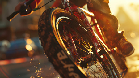 BRISBANE - OCT 10 2023:Person riding on BMX bike on the road.BMX biking requires physical fitness and coordination.