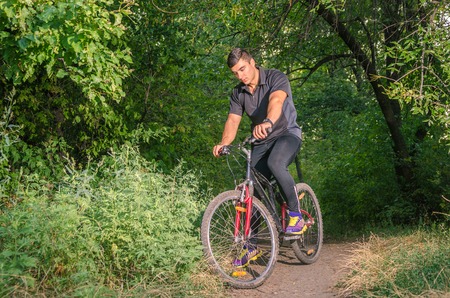 young man on a bicycle on asphalt road