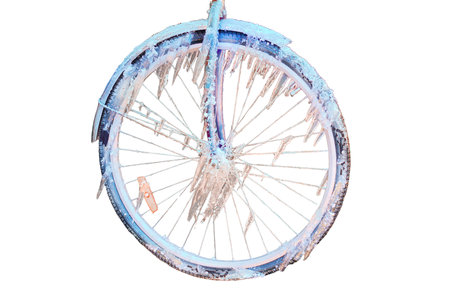Bicycle wheel frozen, isolated on a white background
