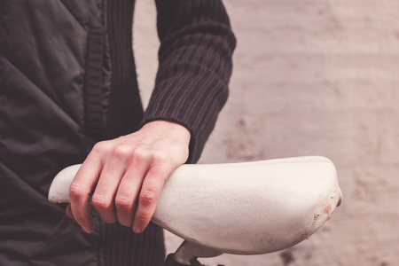 Portrait of a young man with a bmx bicycle. BMX rider