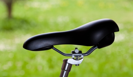 Detail of a bicycle saddle in the countryside