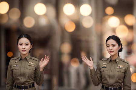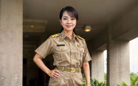 photo of middle aged asian woman in Thai teacher uniform, generative AI