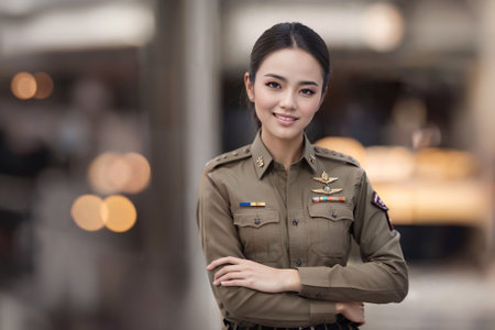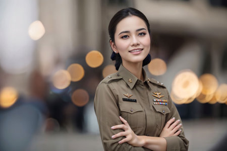 Portrait of a Woman Officer in Military Uniform with a Proud Smile