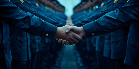 Solidarity among police officers is strengthened by a powerful handshake. Concept Law Enforcement, Police Brotherhood, Solidarity, Handshake Etiquette, Teamwork