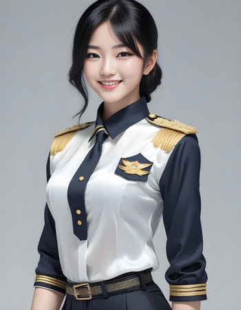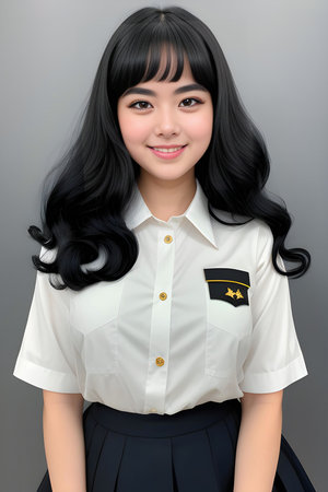 Portrait of a beautiful asian girl in uniform smiling and looking at camera