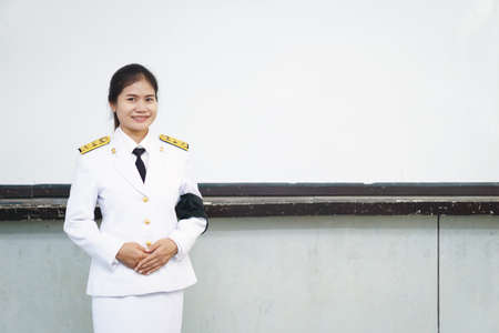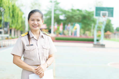 Thai teacher in official uniform on morning duty