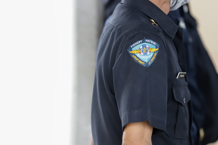 Krabi, THAILAND - June 28, 2020: Patch of the Fisheries Patrol Official, Department of Fisheries, Thailand, Thai text in patch is mean Fisheries Patrol.