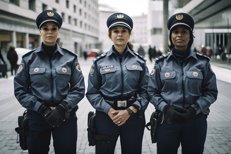 Three women police officers, standing side by side in an outdoor setting, embody the essence of diversity and gender inclusivity within law enforcement