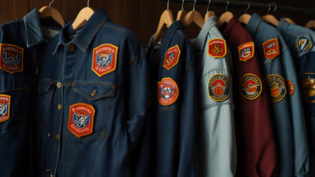 blue military jacket with stickers