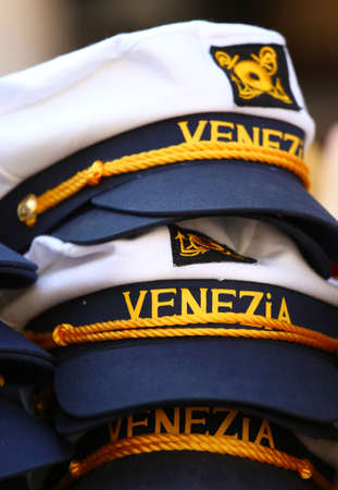 Captain hats of the ship with the Italian text VENEZiA which means VENICE