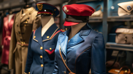 A section of the museum dedicated to flight attendants with vintage uniforms and accessories on display