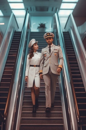 Generative AI : loving couple are ready to go for their vacation they greet the pilot transportation and holiday concept