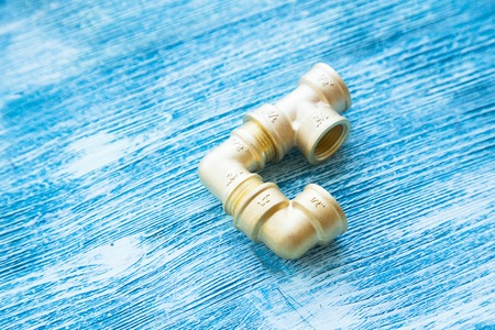 Metal plumbing fittings used to repair the water system. Accessories and spare parts for mechanics. Dark background.