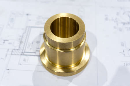 The bronze mandrel after grinding and turning lies on the technical drawing.