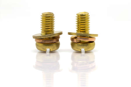 Brass screw for terminal of power supply in electric appliance.-Terminal screw.-isolated on white background