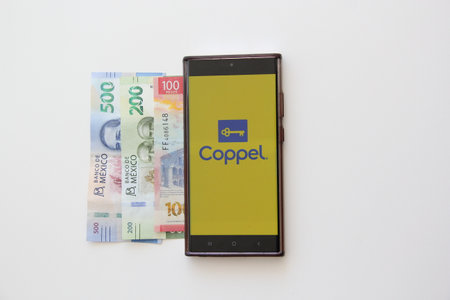 Mexico City, Mexico - Feb 22, 2025: Coppel offers a mobile app and a laptop website for online shopping for financial products and services, one of the largest retail chains