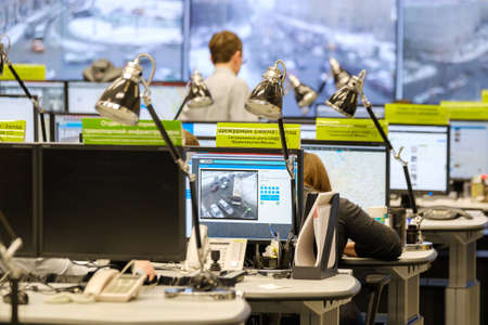 Moscow, Russia - February 9, 2018: Operators work in road traffic control center