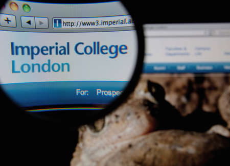 LISBON - JANUARY 25, 2014: Photo of the Imperial College London homepage on a monitor screen through a magnifying glass.