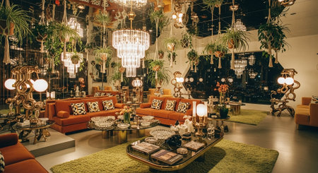 A cozy living space filled with vibrant plants and warm light, showing chic textures and nature-inspired art. A perfect blend of comfort and style, created with Generated AI