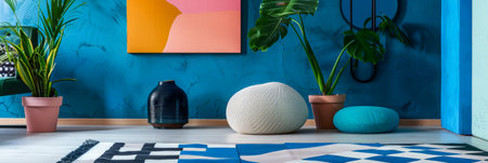 Minimalistic zen interior design composition with vibrant colors and modern decor designer elements