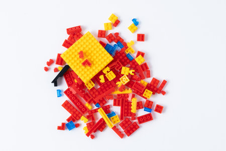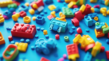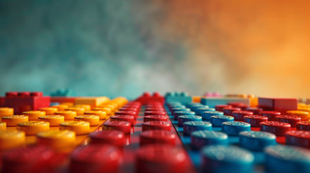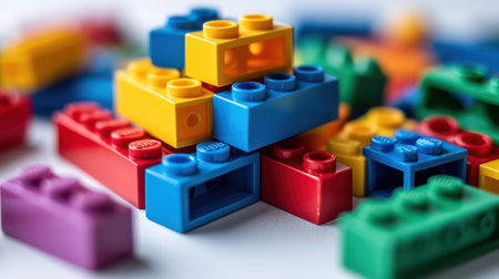 Colorful toy bricks showcase vibrant textures and interlocking patterns for creative play