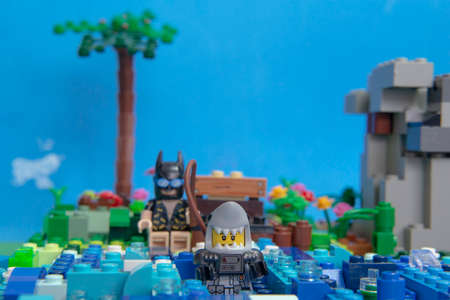 POZNAN, POLAND - Dec 12, 2019: Plastic Lego figurine concept in soft focus background.