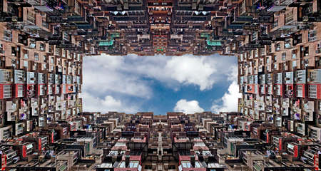 Crowded residence bottom view Hong Kong residence area, cityscape background
