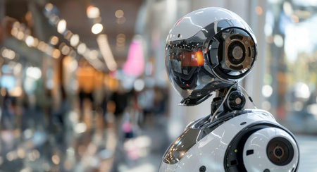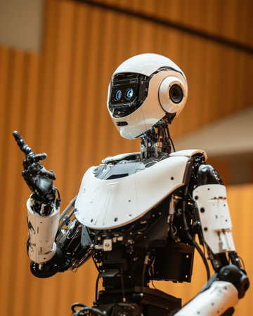 A futuristic robot with sleek design and glowing features, representing advanced technology and artificial intelligence. image conveys innovation
