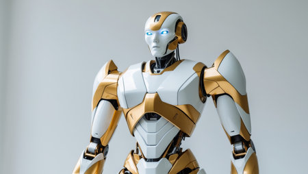 AI Generated. Futuristic Robot With Golden And White Armor Design